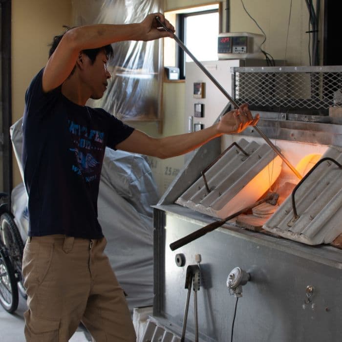 共栄ガラス、そして、ガラス工房清天で修行を積み、2004年うるま市に 「ガラス工房 ロブスト」 を設立。
