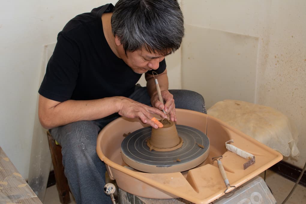 人間国宝・金城次郎氏の二男、金城敏昭さんに師事。その後、青風窯で研鑽を積み、2008年 「工房ことりの」 を設立。