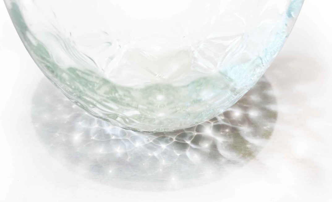 独自の技法によって、粗く立体感のあるアイスカット模様を施した虹工房の意欲作。一目見ただけで、特別なグラスだと思わせるディテールは、目上の人や、特別なお祝いのプレゼントにお勧めです。