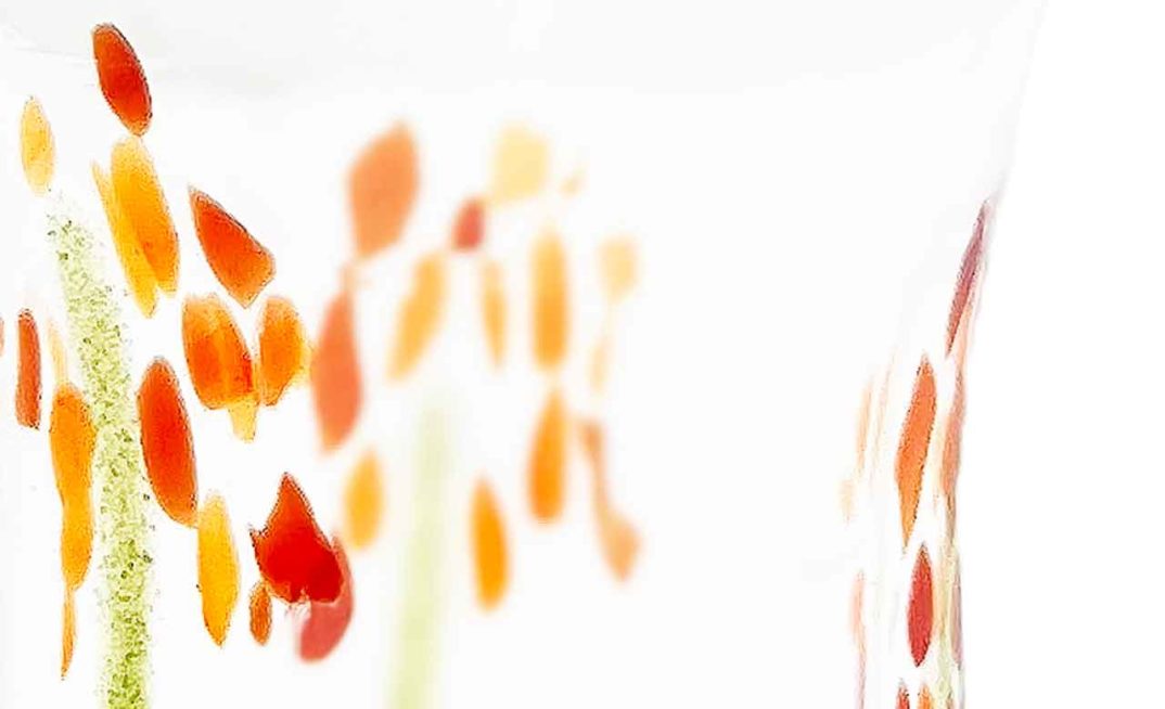 ガラス全体に施された虹工房独特の泡と、帯状にグラスを一周するガラスのラインがアクセントとなっているグラス。手に持つと泡の感触が気持ちの良いグラスです。アクセントとなっているラインがちょうど指にかかり手にしっくりきます。お酒好きの方のプレゼントにお勧めです。